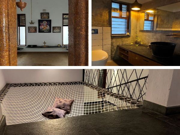 Kuttan's Residence Interiors Location: Panangad, Cochin | Area: 5000 sq.ft. Kuttan's Residence Interiors Hidden gem in Panangad, Kochi—single-storied residential haven harnessing natural light and ventilation. Highlight for rustic materials—rough-sawn wood, rustic stone flooring, smooth concrete finish for wall surfaces. Bed frames built within structure with wooden planks for mattress holder. Strategically positioned windows and openings in order not to lose the connectivity with the outdoors.